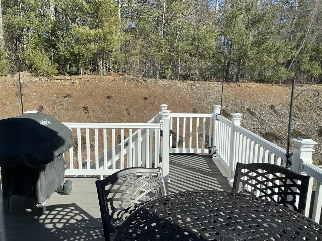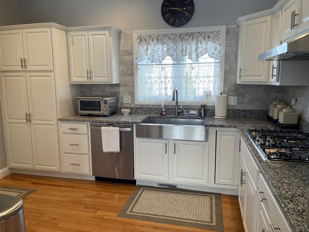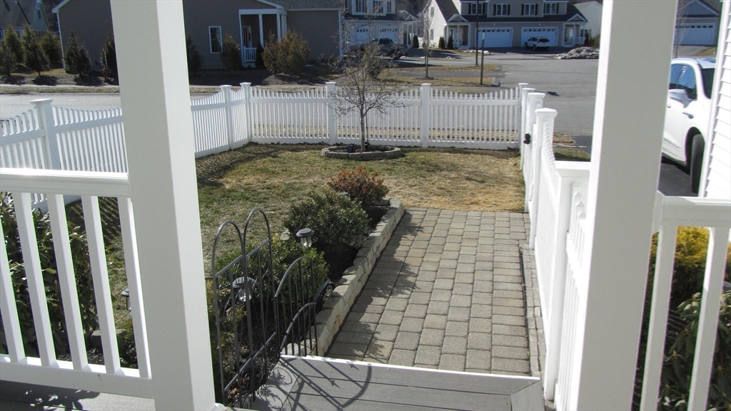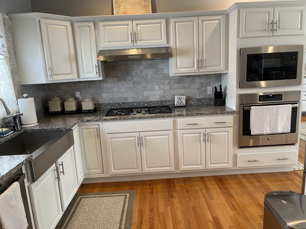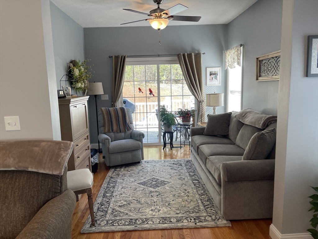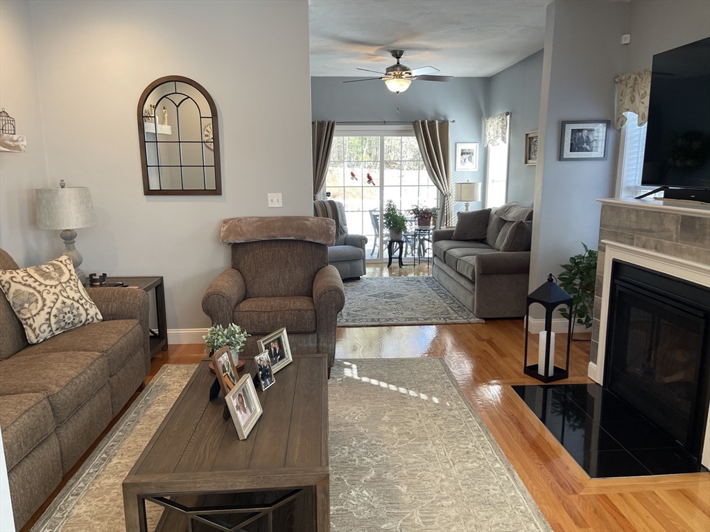 Impeccable detached single level unit with incredible upgrades! Enter the from the front porch to the open floor plan living room with gleaming hardwoods/ applianced kitchen with granite counters and tile backsplach/a cozy den with fireplace & an additional room room overlooking deck and woods is ideal for in house office use or just contemplation. En suite main bedroom with walk in closet/separate laundry room/ guest bedroom bedroom and 2nd bath complete the1st floor/Partially finished basement with walk out/2 car garage/fenced front yard ideal for your pup!