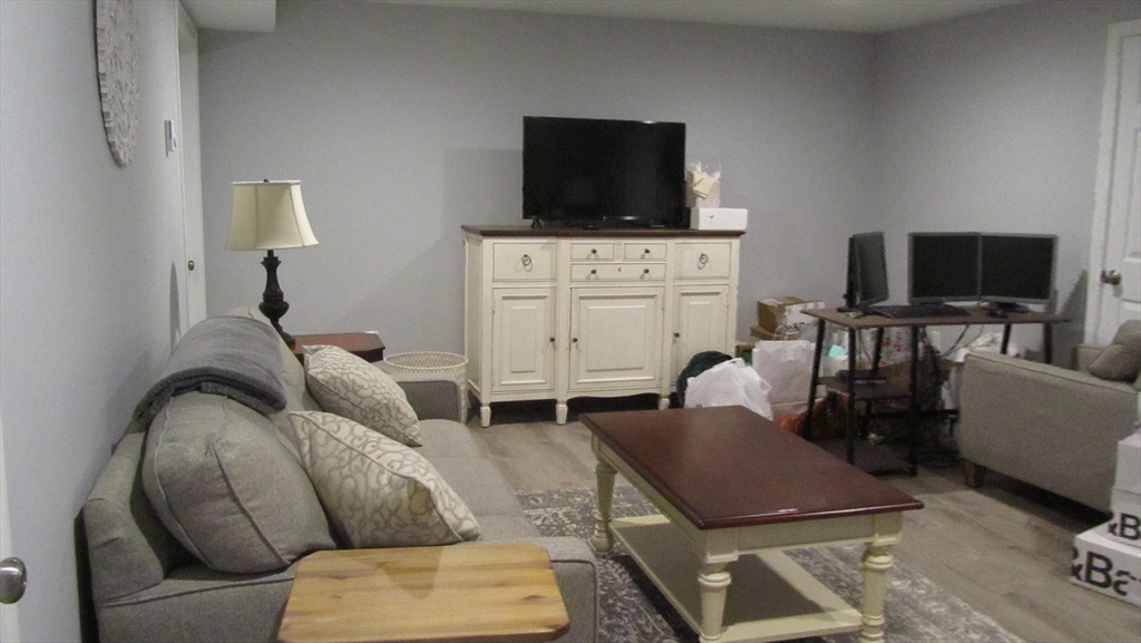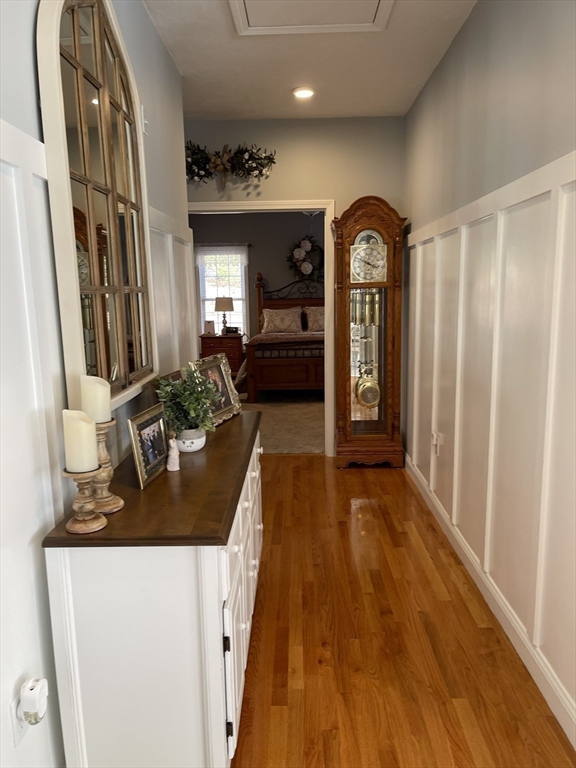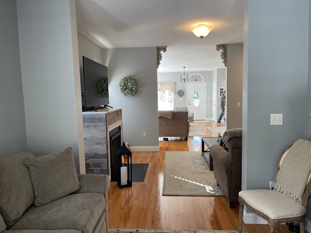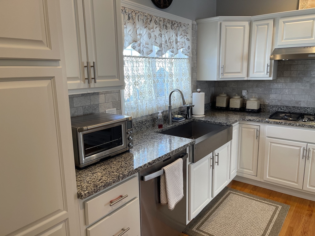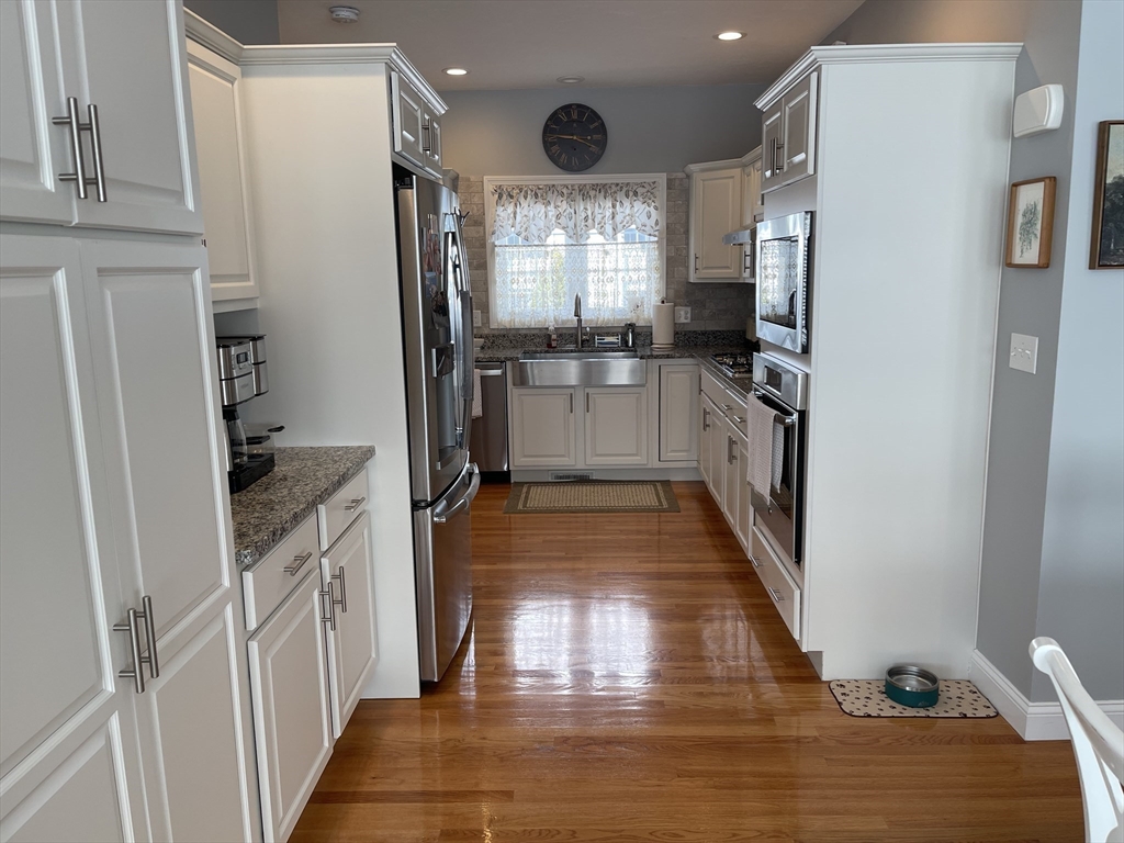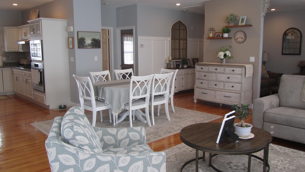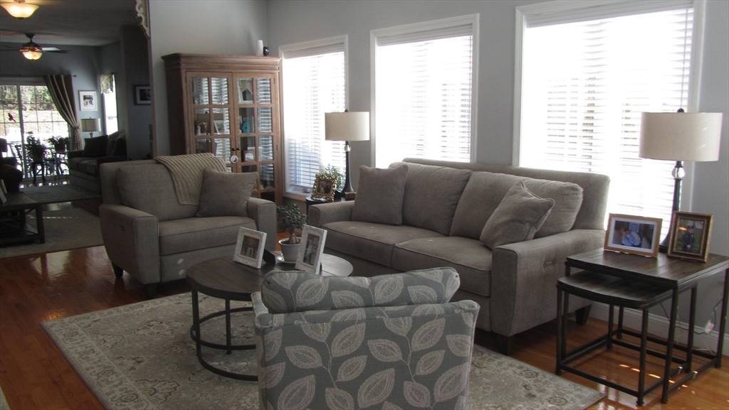 Impeccable detached single level unit with incredible upgrades! Enter the from the front porch to the open floor plan living room with gleaming hardwoods/ applianced kitchen with granite counters and tile backsplach/a cozy den with fireplace & an additional room room overlooking deck and woods is ideal for in house office use or just contemplation. En suite main bedroom with walk in closet/separate laundry room/ guest bedroom bedroom and 2nd bath complete the1st floor/Partially finished basement with walk out/2 car garage/fenced front yard ideal for your pup!