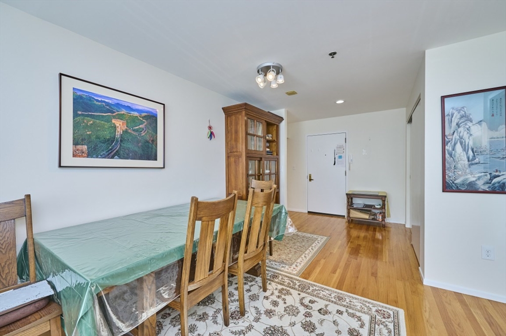 Beautifully renovated condo in Bay Square, one of Cambridge’s premier buildings. This home is filled with terrific natural light and is located on the quiet rear side of the building with a pleasant view. It includes an assigned garage parking space. The bathroom offers dual access for convenient en-suite use. The living room features a large sliding door with a French balcony, while the kitchen is thoughtfully designed and efficient. The bedroom includes a walk-in closet. Building amenities include concierge service, an on-site superintendent, heated pool, sauna, and exercise facility.