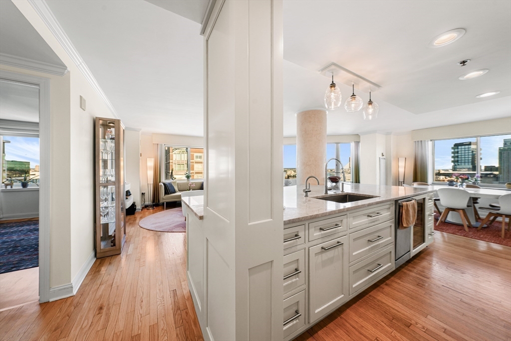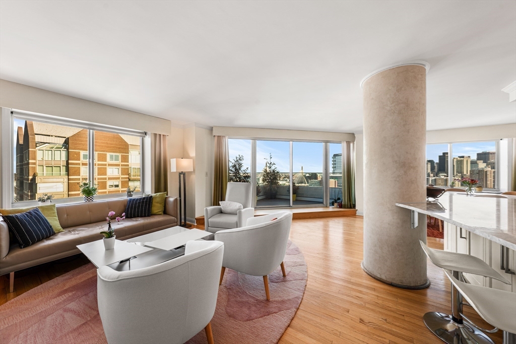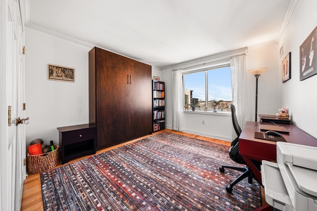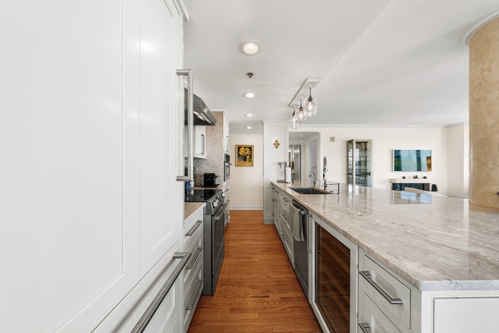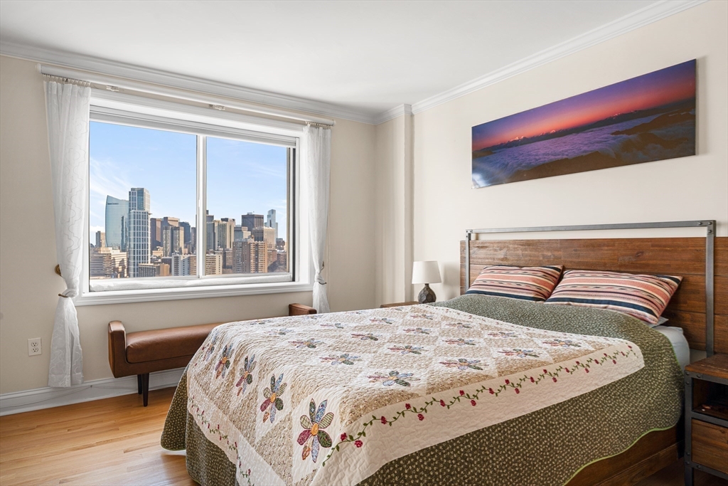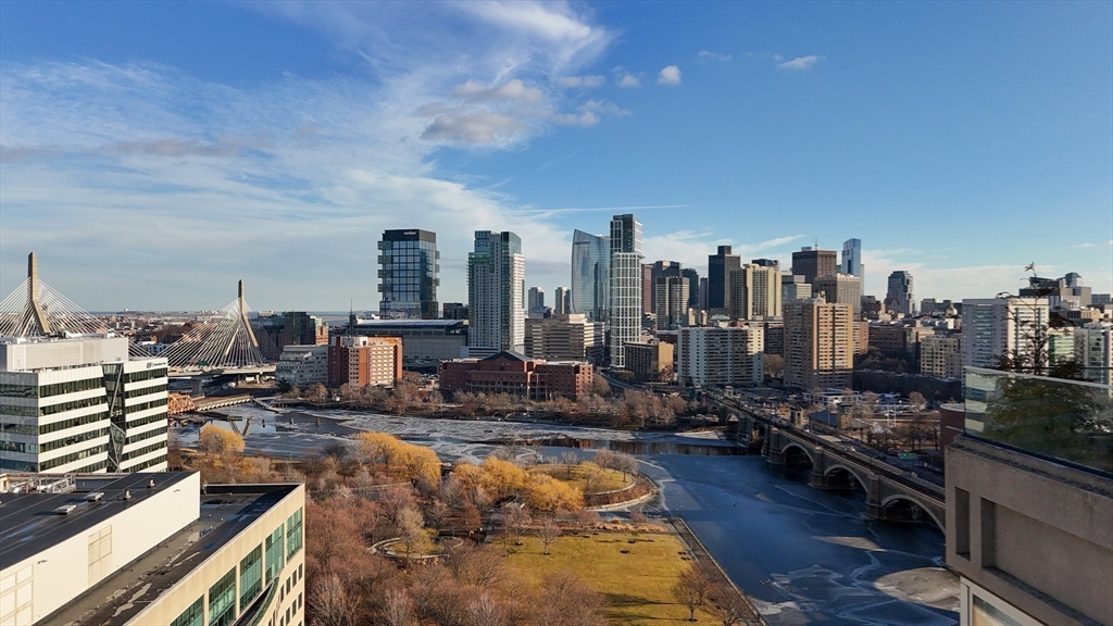 Pristine Penthouse in Regatta Riverview residences with sweeping views of the Boston skyline and the Charles River. Enjoy the exclusivity and quiet that only a top-floor unit can provide, complete with expansive windows that flood the home with natural light. This spacious penthouse features 1,266 square feet of living space with two bedrooms and two full bathrooms. Extensive custom renovations include a high-end open kitchen featuring custom cabinetry, premium quartz countertops and professional-grade Bosch appliances. The primary suite has a newly added, massive walk-in closet and a sound-proof wall for enhanced privacy. New designer lighting and hardwood flooring throughout, electric fireplace and fresh paint make this the perfect home. Private balcony with breathtaking, unobstructed views of the Charles River and the Boston Skyline! Amenities include a 24 hour concierge, pool, gym, theater, bike storage, valet parking and shuttle service to Kenmore and North station. A must see!