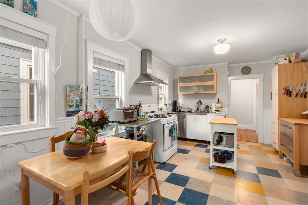 Turnkey investment or exceptional owner-occupant opportunity just steps to Mass Ave and vibrant Davis Square. This extensively renovated two-family was updated in 2017 with new roof, HVAC, siding, and owned solar panels, plus a Letter of Full De-leading Compliance. Fully rented w/strong rental history generating $7,200/month. The upper duplex, currently rented at $4,000/month and delivered vacant by April 15, offers 3 bedrooms and 2 full baths across the 2nd and 3rd floors. Highlights include an open living/dining layout, updated kitchen with center island, marble counters, newer appliances, large pantry, generous bedrooms, updated bath, front porch, and 3-season porch. The top floor features two bedrooms with cathedral ceilings, a full bath, 2025 LG washer/dryer, and mini-split A/C. The 1st-floor unit, rented at $3,200/month, includes 2 bedrooms, updated bath, and a updated kitchen with all-new 2024 appliances. Replacement windows. Solar panels significantly reduce electricity costs.