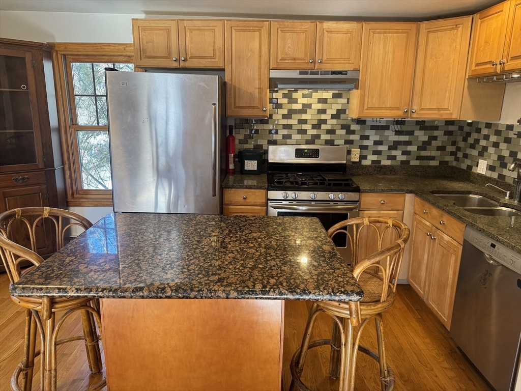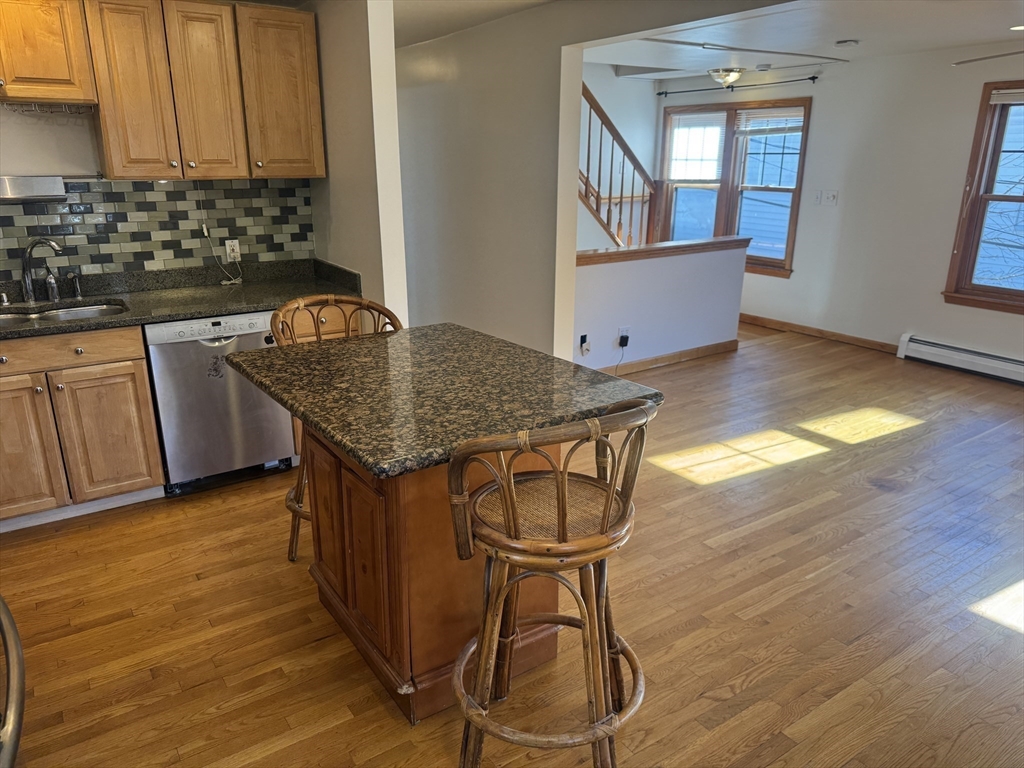 Sunny 4 bedroom duplex in ideal Inman Sq location. Large, chef's kitchen with stainless steel appliances, large center island, glass tile back splash and granite counters. Open living/dining room with bay window overlooking Norfolk St. Lower level features two bedrooms and a tiled bath with double sink vanity. Two additional bedrooms located on the 2nd level with another full bath. Ample storage in unit and additional storage and W/D in basement.