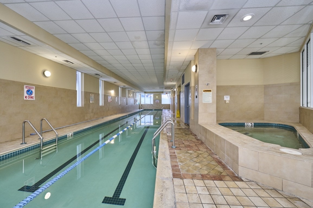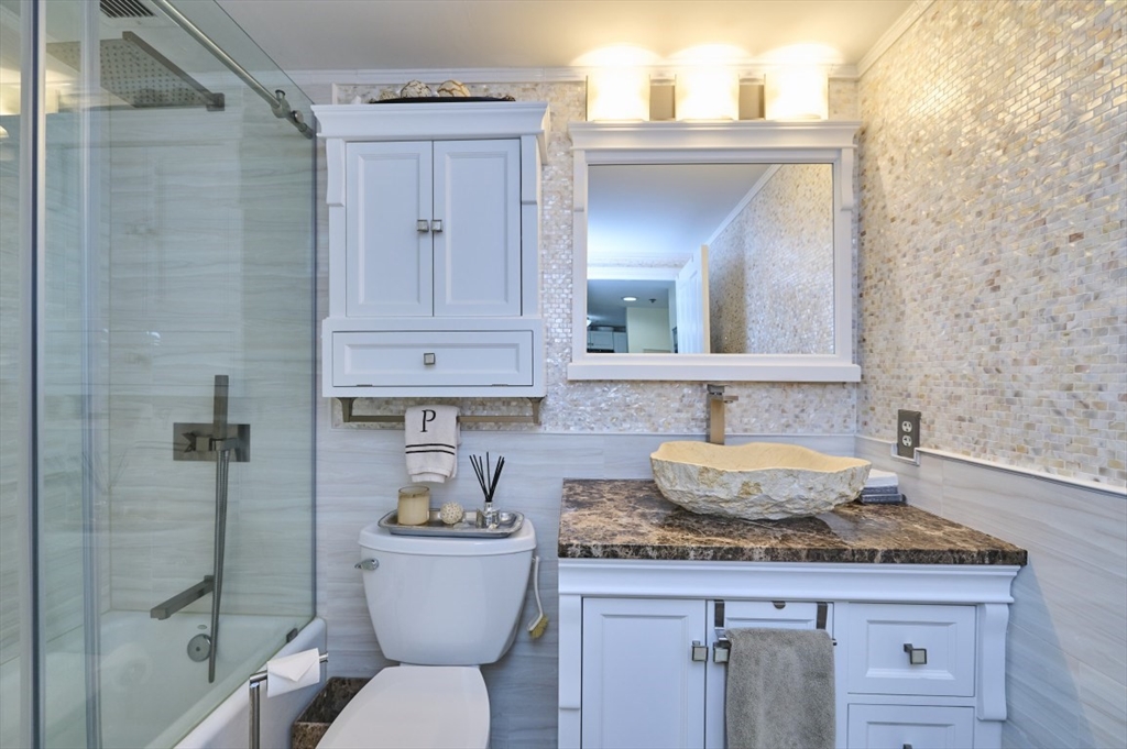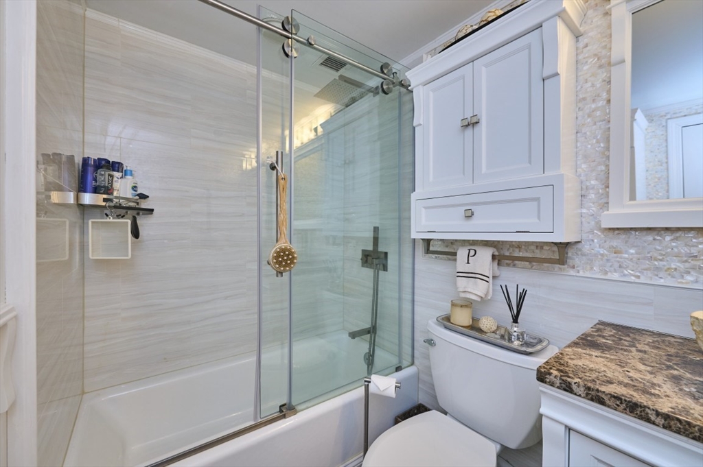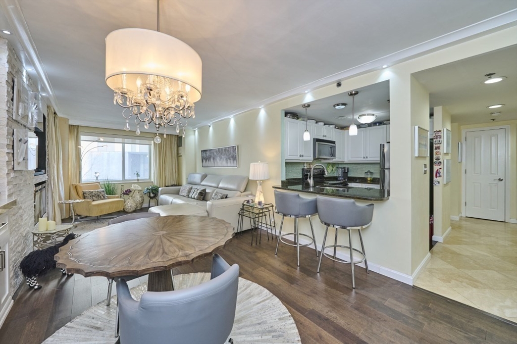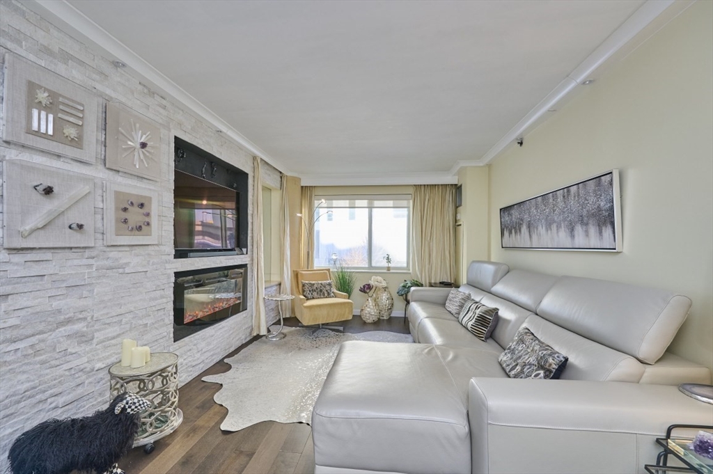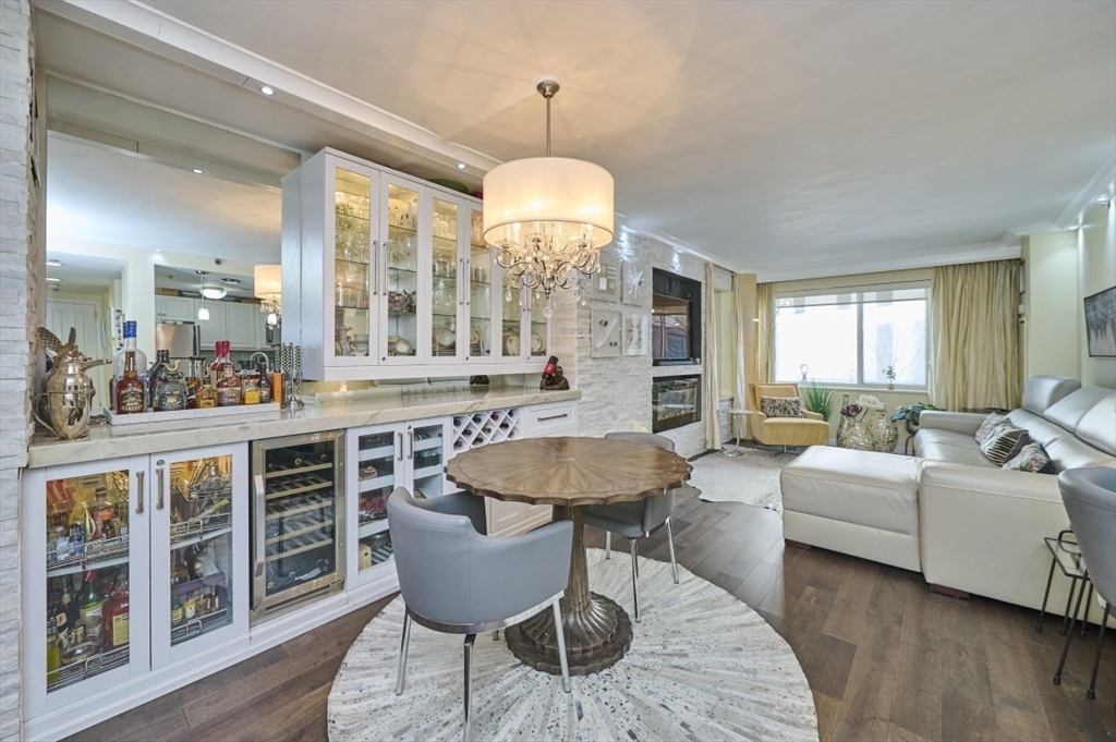 Experience unparalleled luxury in this one-of-a-kind condo where modern design meets high-end finishes. This 1-bed plus study residence offers the generous size of a traditional 2-bedroom floor plan, enhanced by unique custom upgrades throughout. Unlike any other unit in the building, this home features a sophisticated living room anchored by a white stacked-marble accent wall, a sleek built-in electric fireplace, and lighting scheme with recessed puck lights. The open layout includes a dining area with a built-in bar, wine rack, and glass front cabinets. The primary suite is a true retreat with textured wallpaper, custom molding, and a spa-like bathroom boasting a floral mosaic marble tile wall and rain shower with body jets. A versatile study offers custom built-ins and a Murphy bed, providing the utility of a second bedroom. Enjoy world-class amenities including a concierge, fitness center, lap pool, and much more. Located minutes from shopping, parks, highways, and public transit.