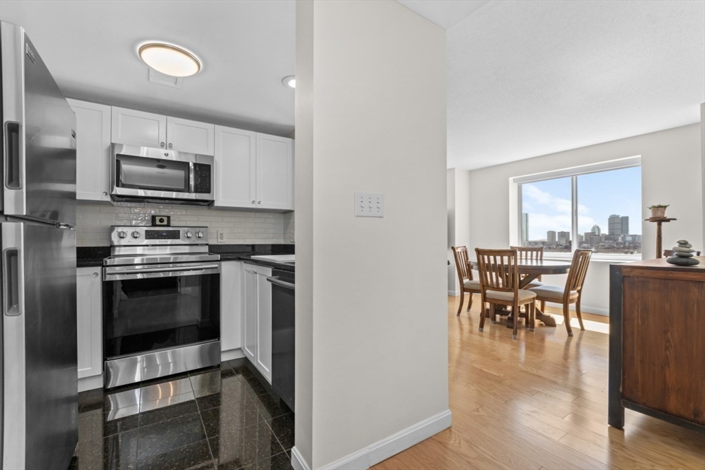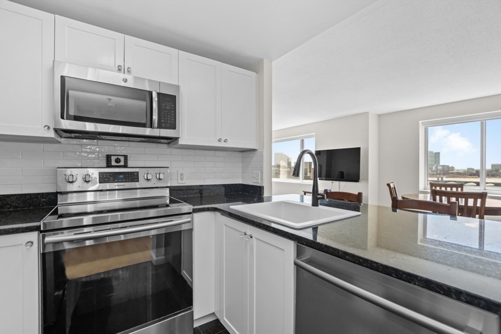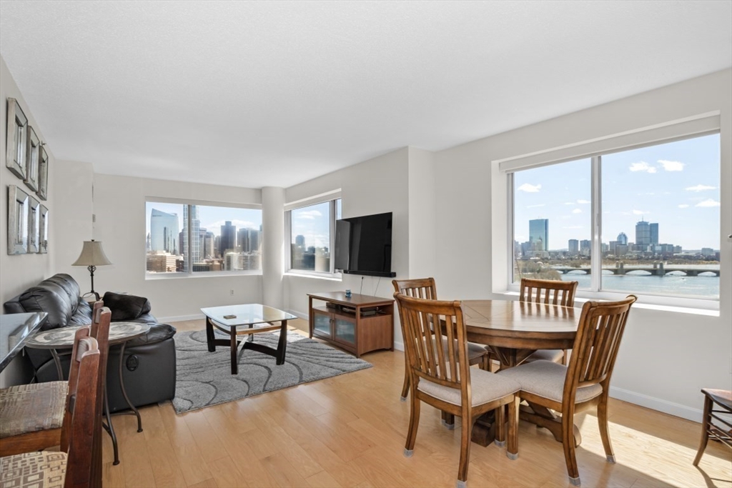 Enjoy stunning views of the Charles River and Back Bay from this SOUTH facing, beautifully updated corner unit in one of the city’s most sought-after locations. Expansive windows fill the space with natural light. Beautiful hardwood floors throughout! Kitchen features granite countertops, glass tile backsplash, ceramic sink and a breakfast bar. Bathrooms offer custom vanities, designer lighting and elegant tiles. Price includes one valet parking. Washer/dryer in unit. Building amenities include 24/7 concierge and valet parking, on-site property management, gym with lap pool and hot tub, movie room, gathering and event room, complimentary shuttle service, laundry/dry cleaning pick up and drop off. Beautiful North Point Park in front of the building. Steps to Charles River,Galleria Mall Cambridge Crossing and restaurants,T, MGH, MIT. Short walk to Charlestown, Wholefoods and N.End via walk bridge. PET FRIENDLY!!