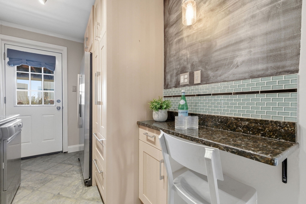 Discover the allure of this sunlit penthouse with two spacious bedrooms in a charming brick building near Central Square. The kitchen combines style and functionality with granite countertops, stainless steel appliances, and a convenient desk nook. Enjoy your private deck, ideal for outdoor dining and relaxation. The spacious living area offers a separate dining space, complemented by warm maple flooring throughout. The bathroom features contemporary tile flooring and a glass-enclosed tub. Additional conveniences include a deeded parking space (#7) and in-unit laundry. Ideally located near Central Square, MIT, public transit, restaurants, and shops, this penthouse combines classic Cambridge charm with modern comforts.