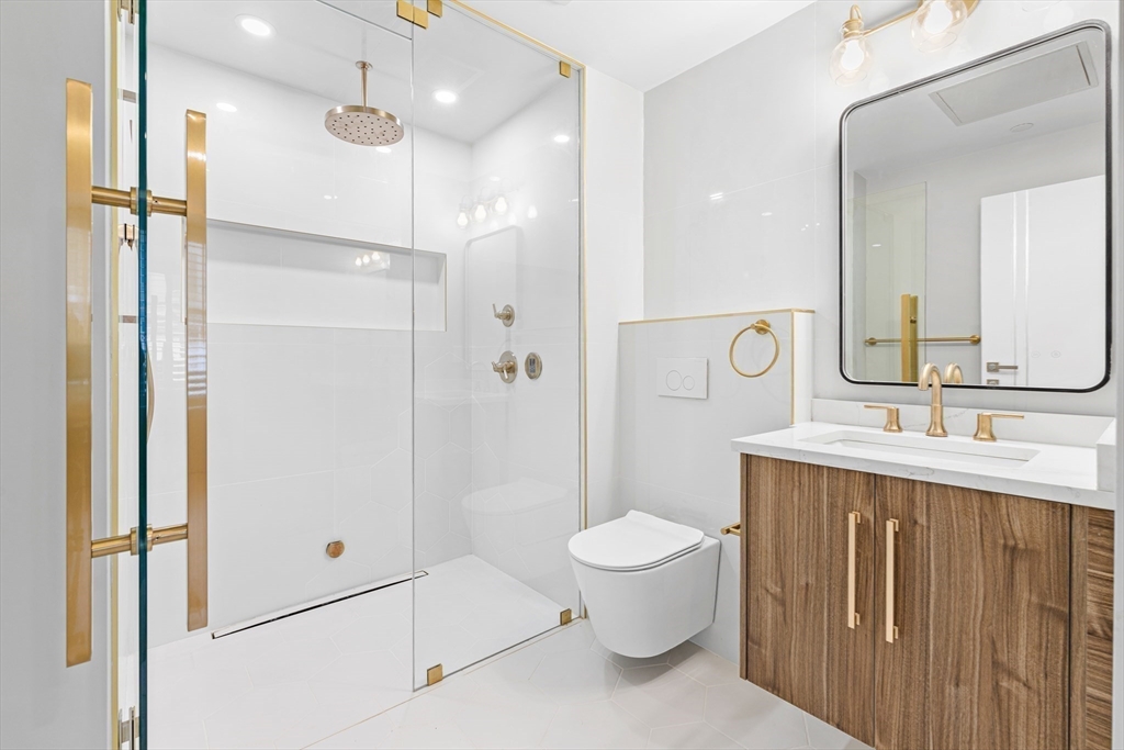 Available June 1. This brand-new construction features a strikingly modern design that exudes sophistication. Enjoy the rarity of two en-suite primary bedrooms, complete with a luxurious steam bath in the main suite. This bi-level unit offers exclusive access through a private entry. The spacious living room showcases a gas fireplace and a sleek linear mood light strip, complemented by built-in ceiling speakers. Step into the chef's kitchen, equipped with top-of-the-line Thermador appliances, including a custom refrigerator and dishwasher. The design features an open, European feel with clean lines and exquisite attention to detail. Enjoy exclusive use of the garden area, a private storage unit and non-tandem covered parking. Don't miss this incredible opportunity!