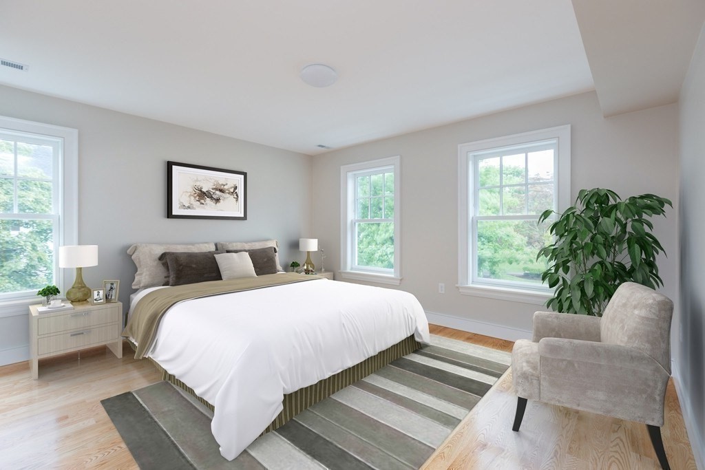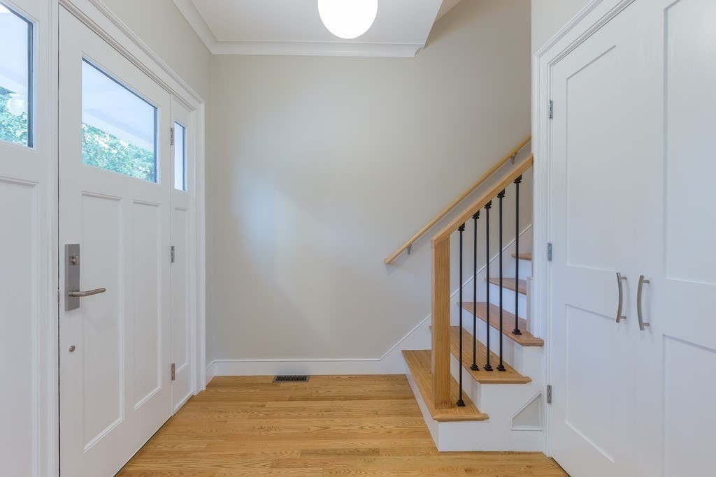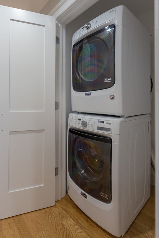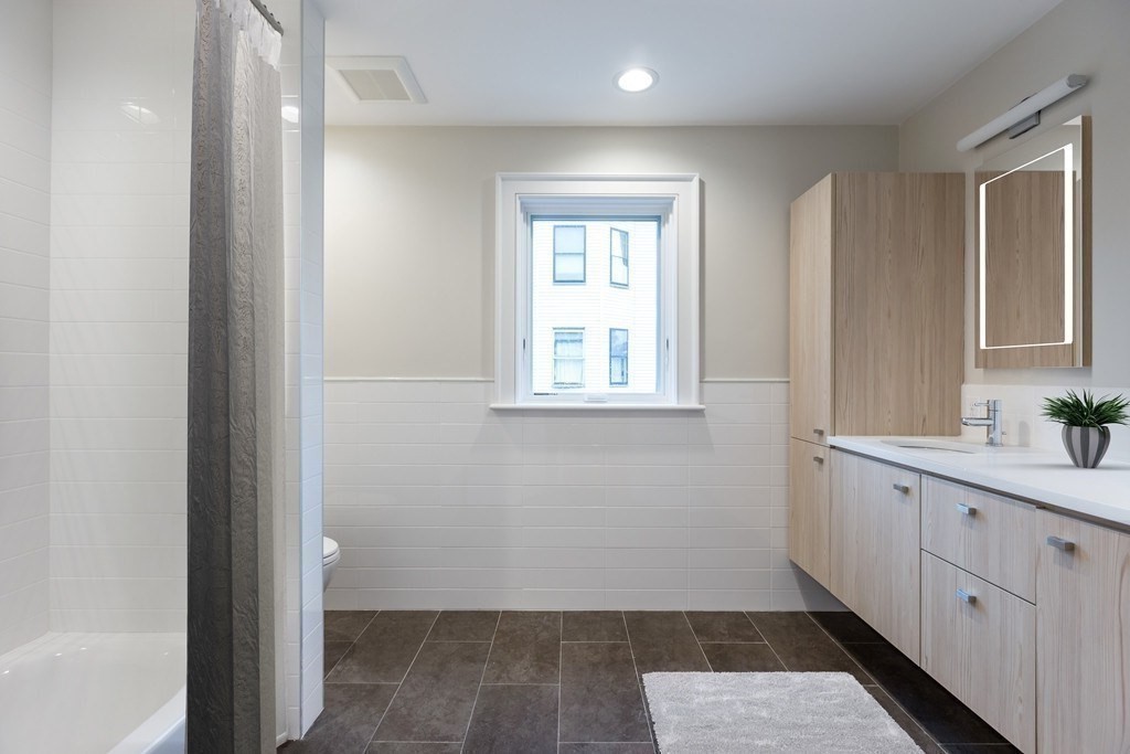 Superbly renovated Townhouse in 2017 with private entrances make this a desirable, elegant home with luxurious finishes. 4 off-street parking spaces; 2 gar, 2 off-st tandem in dedicated driveway. The interiors are sun-filled with high-end finishes in every room. Kitchen has a waterfall island that opens to an expansive front-to-back dining/living area. A slider in the rear opens to a private deck,dedicated driveway & common patio. The modern staircase brings you to a wide 2nd-floor hallway with a full-size washer & dryer and linen closet. 2 bedrooms share a modern bath with tub. 3rd-floor primary suite has en-suite bath w/glass shower enclosure. Many large closets throughout as well as a full basement w/interior access for additional storage. Systems: 2 high-efficiency HVAC systems, energy-efficient LED lights & tankless water heater. No animals & No smoking. Nearby bus stops for buses 64 & 68 accessing Cambridge locations. Harvard & Kendall Sqs are within 1 mile. Park nearby.
