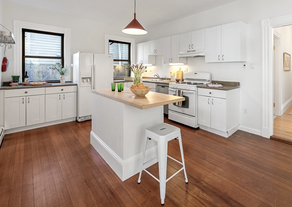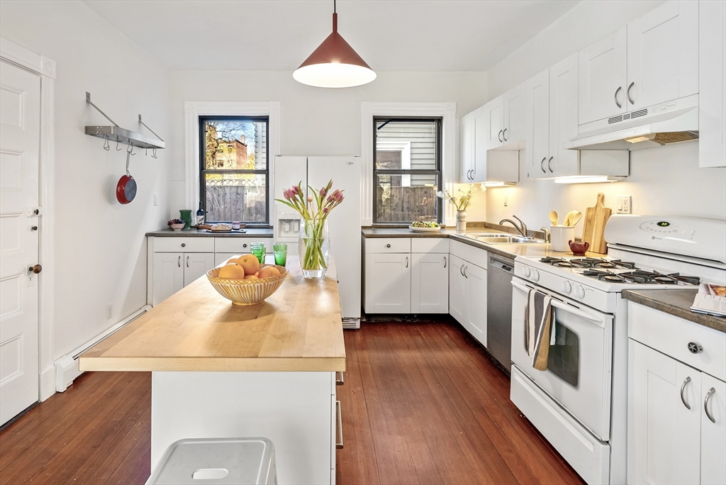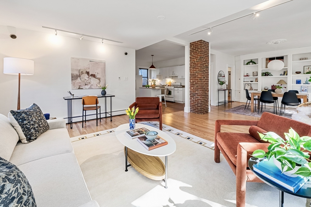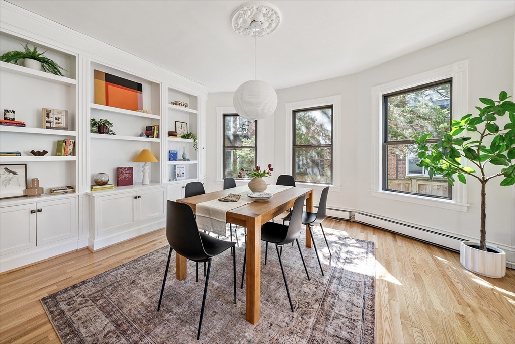 Tucked along a quiet one-way street just moments from Mass Ave, Unit 4 at 17 Gray St. offers a rare sense of calm in the heart of Cambridge. This oversized one-bedroom lives generously, with an easy flow for entertaining, abundant windows & high ceilings. The beautiful dining room features a built-in that adds warmth & function, and the kitchen opens easily into the main living spaces, creating a natural place to gather. The bath carries a sense of character with its clawfoot tub. Mini-split A/C & efficient systems, including a newer boiler, bring modern comfort complemented by freshly painted interiors & a mix of brand new & newly refinished floors. Outside, a shared native pollinator garden creates a lush, ever-changing backdrop. From here, life settles into an easy Cambridge rhythm: morning coffee along Mass Ave, afternoons wandering around the Quad, evenings in Harvard Sq. Just a few blocks from Bagelsaurus & Giulia, it’s a setting that feels both connected & quietly removed.