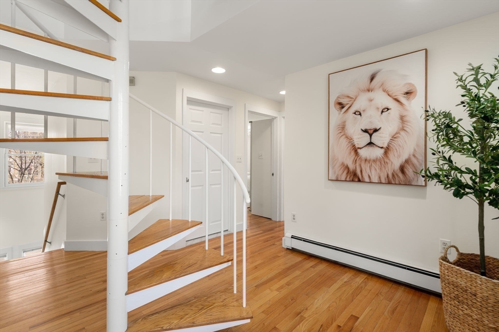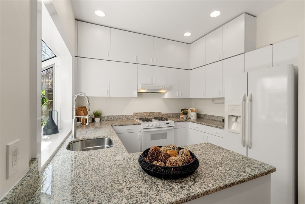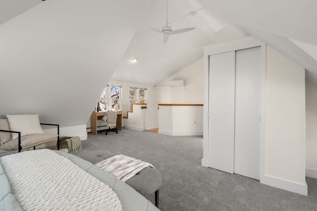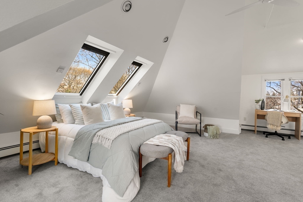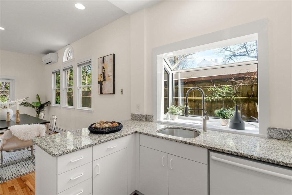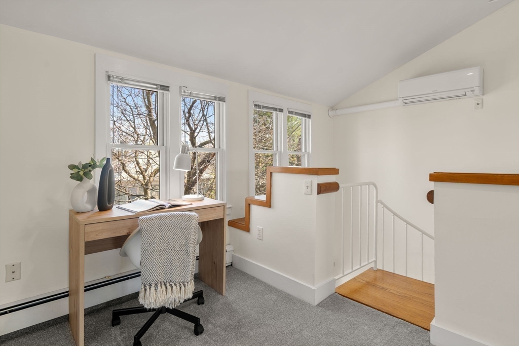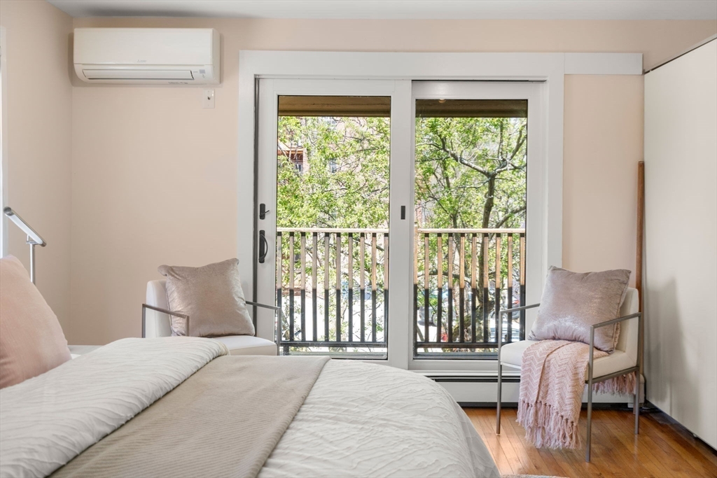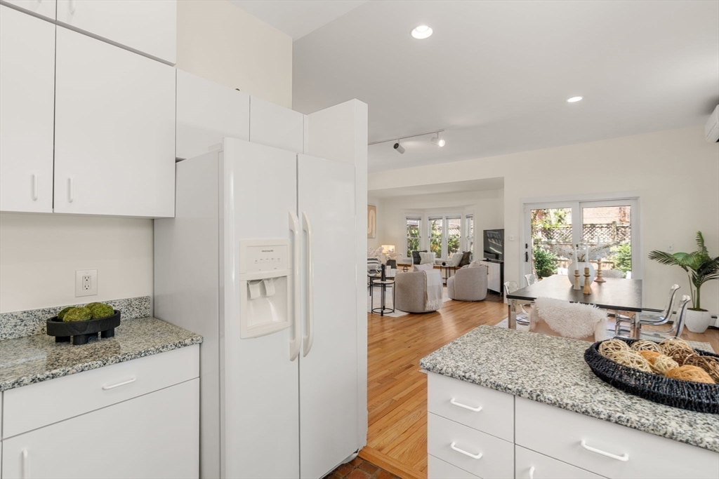 Rare Mid-Cambridge Carriage House with Outdoor Space & Parking! Unique circa-1900 carriage house, offering charm, privacy, and flexibility in a prime Cambridge location between Harvard Square, Central Square, Inman Square and close to Cambridge Hospital. Tucked off a quiet one-way street, this attached single-family is move-in ready with opportunity to personalize. Main level features open living space with high ceilings, kitchen with granite counters, sun-filled dining area, half bath, laundry, and direct access to a private fenced yard with bluestone patio and storage shed. Second floor offers a spacious primary bedroom with a private balcony, full bath with walk-in hydrotherapy tub/shower, and second corner bedroom with yard views. Skylit third floor has vaulted ceilings, new carpeting, and full bath, ideal for guests or an office. Other amenities include A/C, fresh paint, refinished hardwood floors, and off-street parking outside your door. This is a must see!