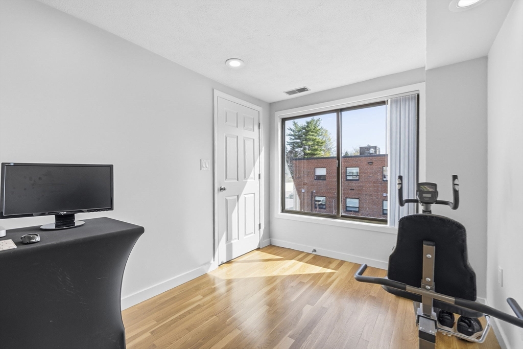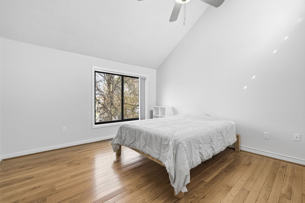 CAMBRIDGE LIVING. Highly Sought-After Neighborhood within the "Tree-Lined" West Cambridge, 581 Mount Auburn Street, Single Family Attached LIVES like a Private Home...NO HOA, NO CONDO FEES. Thoughtfully designed 3 Bedroom, 2.5 Bathroom spans 1,600+ SF w/ 3 LEVELS + GARAGE PARKING & Central A/C. Gleaming Hardwood Floors. Large windows flood the home w/ natural light + frame serene Cambridge views. First Level features ½ bath, Kitchen w/ White Cabinetry, ample storage + just off the Dining Area is direct access to LARGE PRIVATE ENCLOSED PATIO, an entertainer's dream. Main Level offers spacious Living Room w/ Gas Fireplace + a Bedroom/Flex Room. UPPER LEVEL on the 3rd Floor hosts 2 Bedrooms including Large Primary Suite with THREE CLOSETS. Adjacent Garage, side-by-side Washer/Dryer, included. LOCATION is PRIME! Moments to Fresh Pond, Harvard Sq, Arsenal Yards + nearby Parks/Trails. Easy access to Concord Turnpike & I-90.