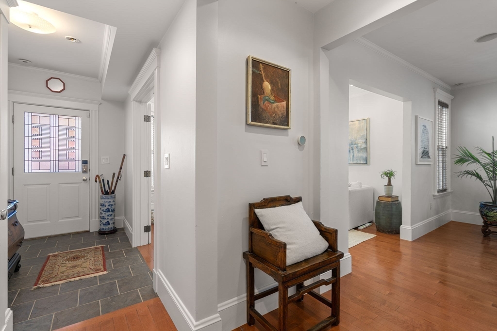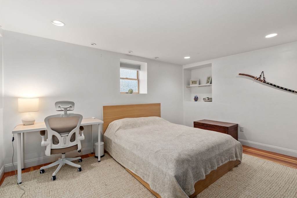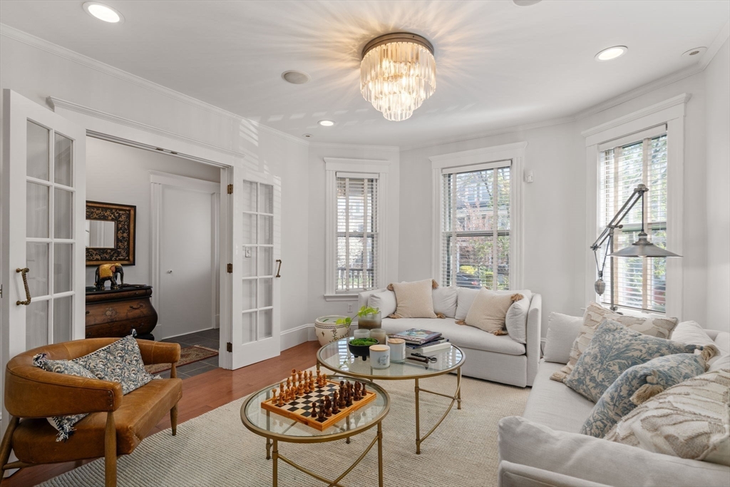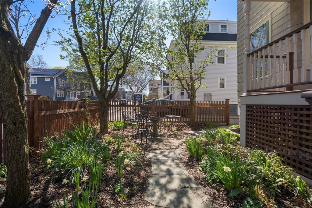Beautifully updated with timeless design, this 3-bedroom, 2-bath residence offers an open, versatile floor plan ideal for both everyday living and entertaining. A welcoming formal living room flows into an open-concept kitchen and dining area with a gas fireplace, creating a warm, inviting space. The home features an updated kitchen with white shaker cabinetry, stainless steel appliances, granite countertops, greenhouse for plant enthusiasts, stylish lighting throughout, updated contemporary baths, and exceptional closet space. Solar Panels purchased and installed in 2020 that offset the electric bill.The lower level, fully remodeled in 2016, expands the living space with a bright and comfortable family room, two additional bedrooms with abundant natural light, and convenient in-unit laundry Enjoy a beautifully landscaped private yard with exclusive front and rear patios, plus one deeded parking space. Convenient to Harvard Sq., Huron Village, Fresh Pond Shopping Center, & Alewife MBTA