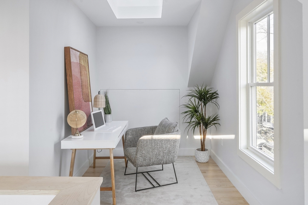 NOT YOUR USUAL RENTAL! Available July 1, 2026- Newer construction luxury attached single-fam offering 2,590 SF of refined living with 4 bedrooms, 3.5 baths, two-car parking, and electric vehicle charging. Featuring dramatic 9' ceilings, maple hardwood floors, and high-end finishes throughout. The upper-level primary suite is a private retreat with a spa-inspired bath with heated floors and a skylit bonus office or lounge. A custom chef’s kitchen overlooks one of two private outdoor spaces, ideal for entertaining. The second level includes two spacious bedrooms, a full bath with soaking tub, laundry area, and excellent storage. A beautifully finished lower level opens directly to a fenced private patio—perfect for summer gatherings. Exceptional location moments from Kendall Square, MIT, Harvard, Boston University, Harvard Business School, Longwood Medical Area, the Charles River, and easy access to Kenmore Sq dining, concerts, and sporting events. Not your usual rental!